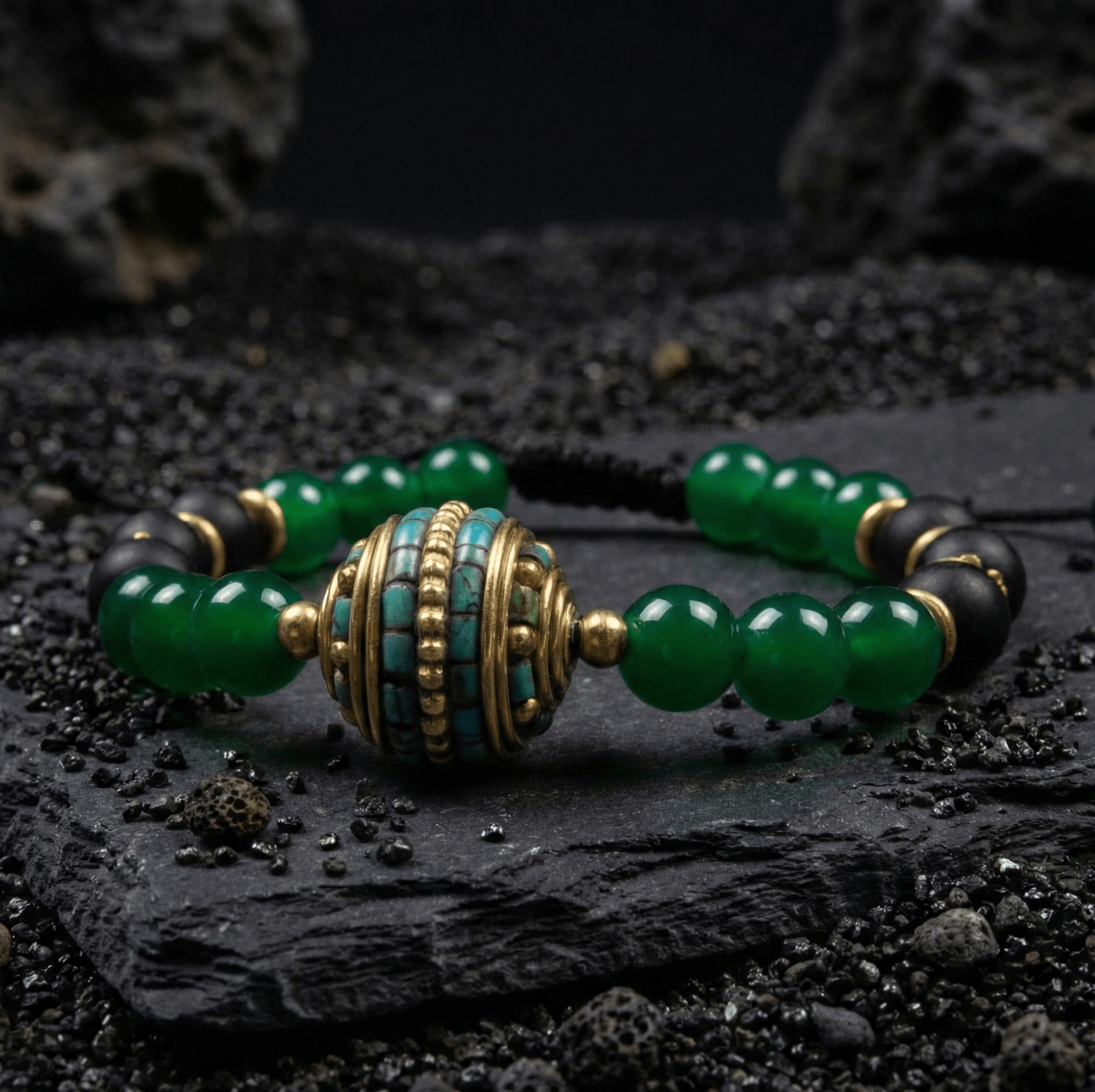 The combination of Aventurine and Matt Onyx creates a powerful bracelet designed to enhance prosperity, creativity, and protection. Onyx stabilizes and strengthens the Root Chakra, grounding the wearer and providing strength and confidence. It helps to alleviate fears and worries while shielding against negative energy. Aventurine, known as the "Stone of Prosperity," is associated with growth, mental clarity, and a positive outlook. It encourages creativity, courage, and inner strength, allowing the wearer to see potential and alternatives in all situations.