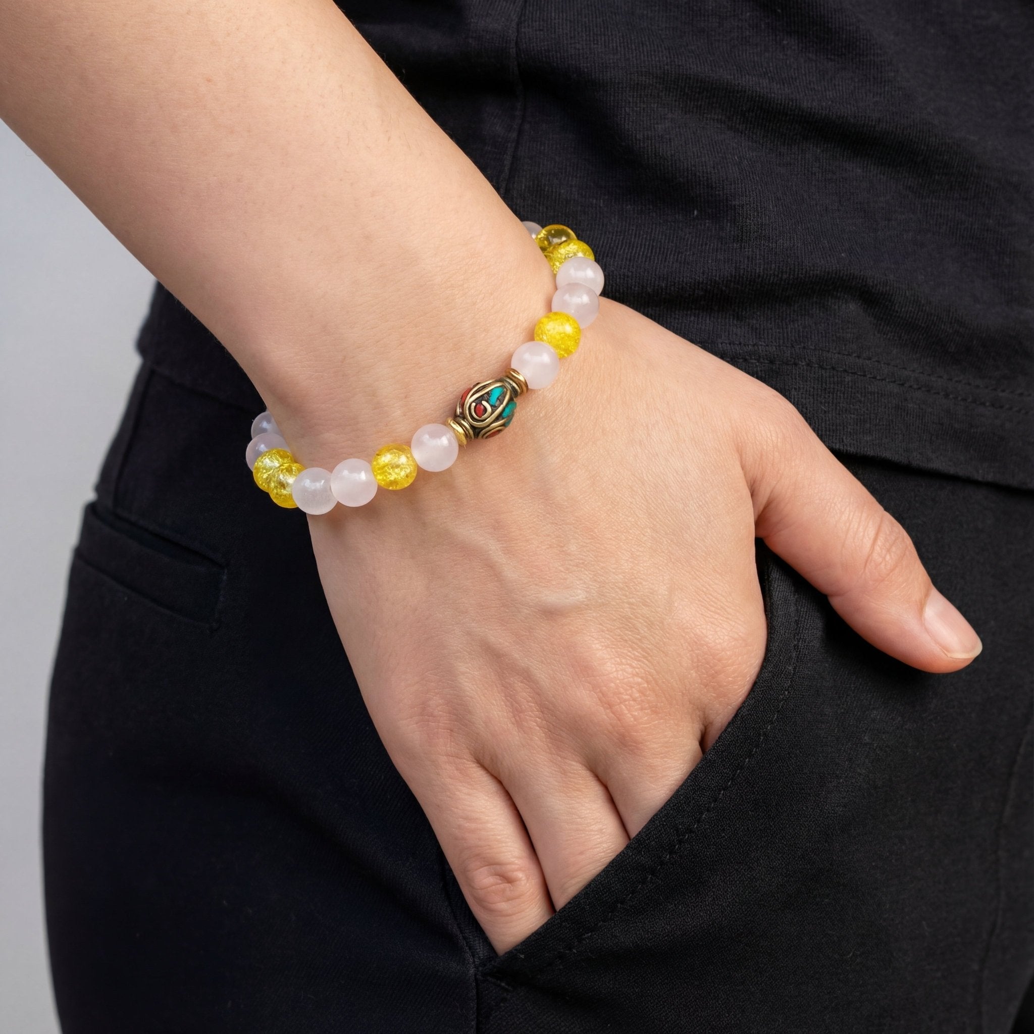 Wear it alone for a serene statement or stack it with your favorite bracelets and malas to amplify love, joy, and personal growth in your life. Perfect for anyone seeking emotional healing and a positive outlook.