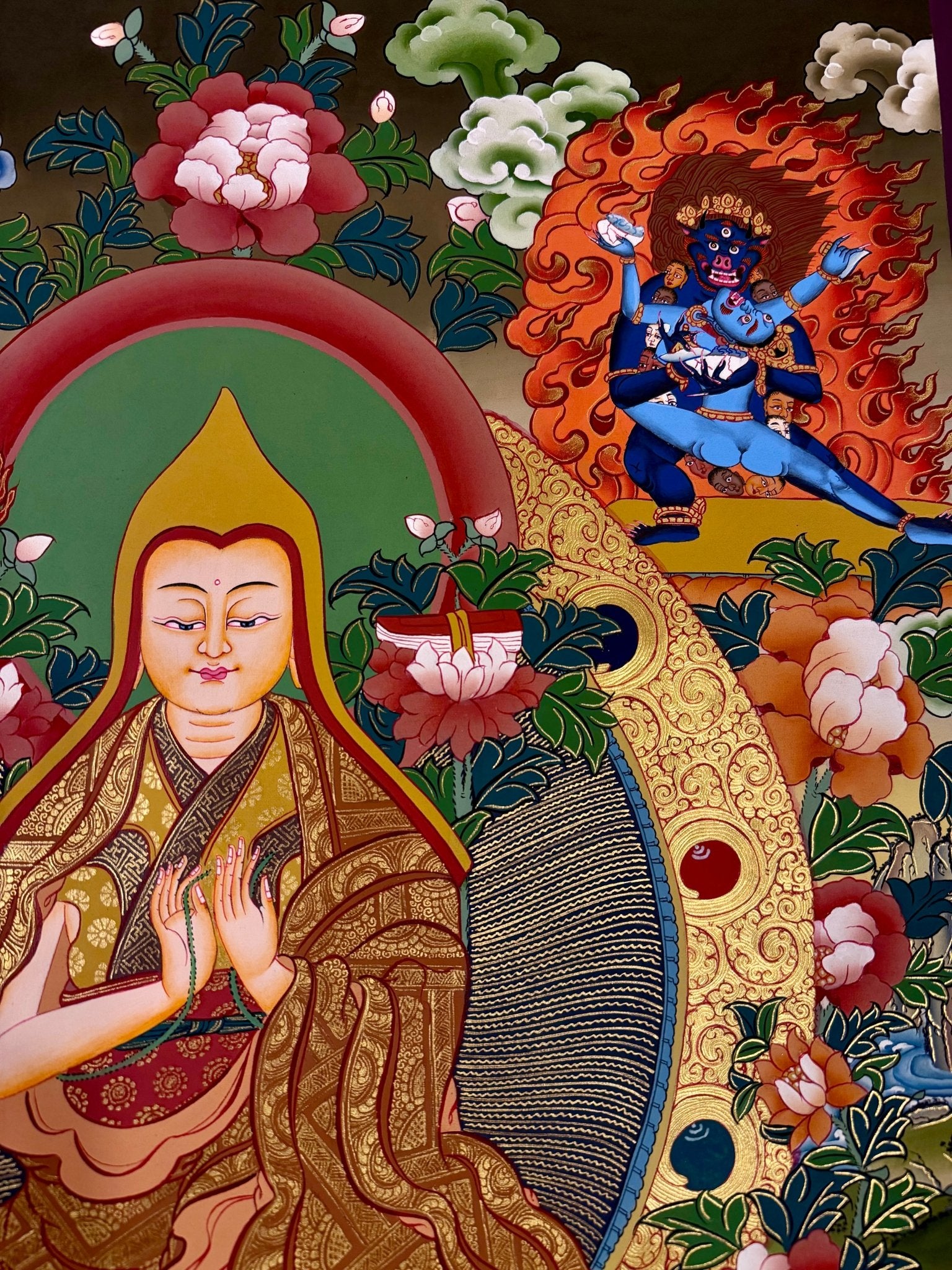 Detailed Craftsmanship: Hand-painted with Tibetan colors and gold dust, reflecting the deep devotion and mastery of the artist.