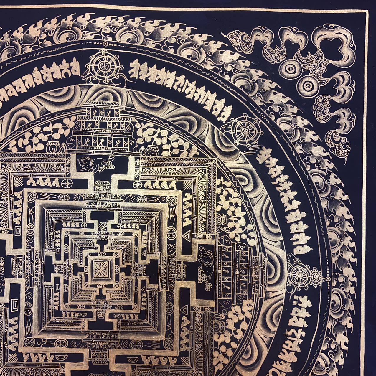 The Kalachakra Mandala Thangka is an exquisite and symbolic representation of the Kalachakra Tantra, one of the most advanced and complex teachings in Tibetan Buddhism. As His Holiness the Dalai Lama has emphasized, the Kalachakra initiations empower disciples to enter into the sacred Kalachakra mandala and identify with the deity Kalachakra. This hand-painted Thangka, created using Tibetan gold dust and natural pigments on organic cotton canvas, is a powerful tool for meditation and spiritual growth.